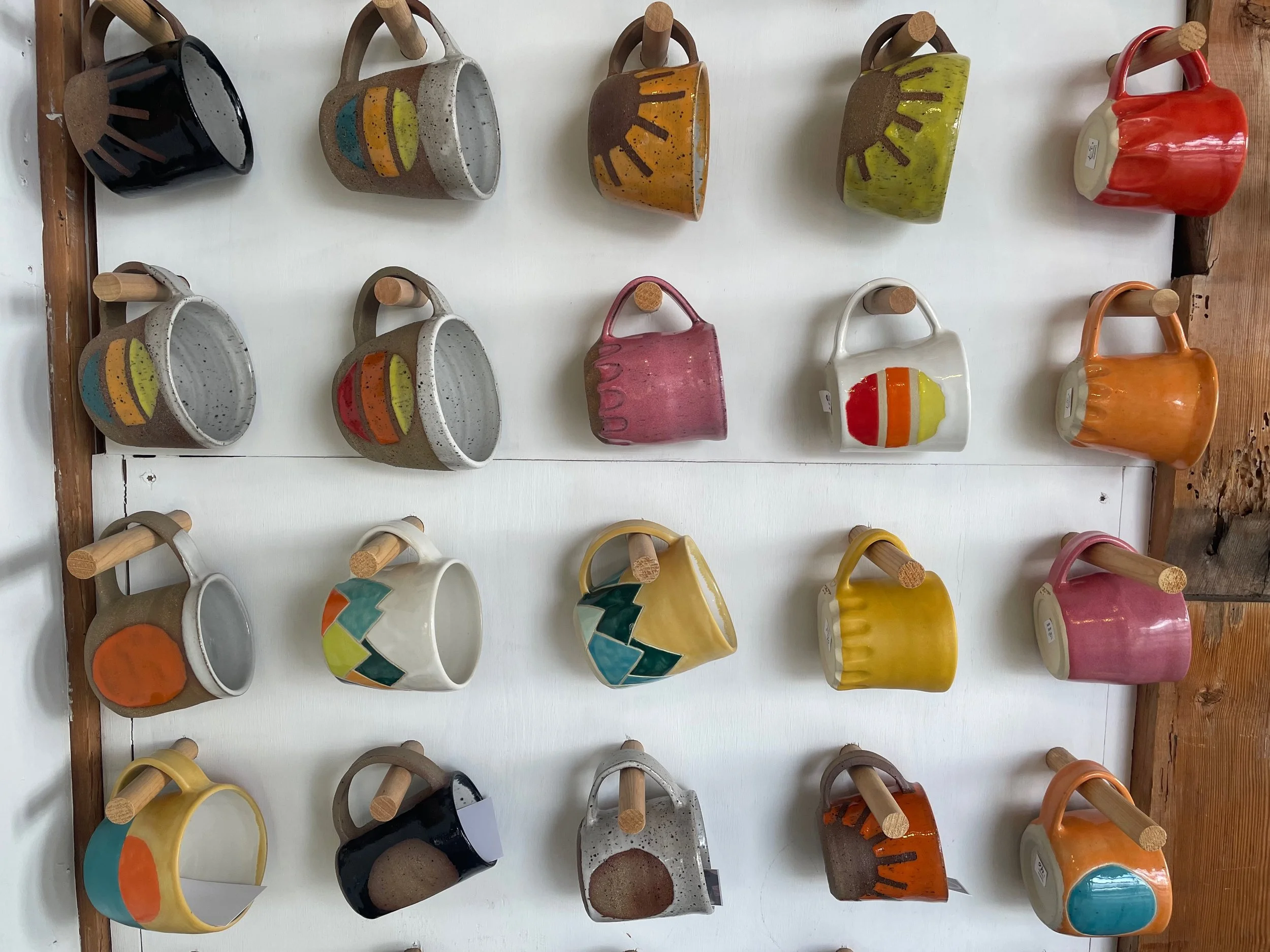 Every piece of pottery, mug or porcelain jewelry made is handcrafted with love, care, and intention. Each mug is thrown on a wheel with stoneware clay, hand carved and painted by yours truly. This is done with food safe glazes then dried and kiln fired twice. The entire process takes four or more weeks to make one item. Minor variations in form, texture, or glaze are a natural part of artisanal ceramics and reflect the uniqueness of my small-batch process.
